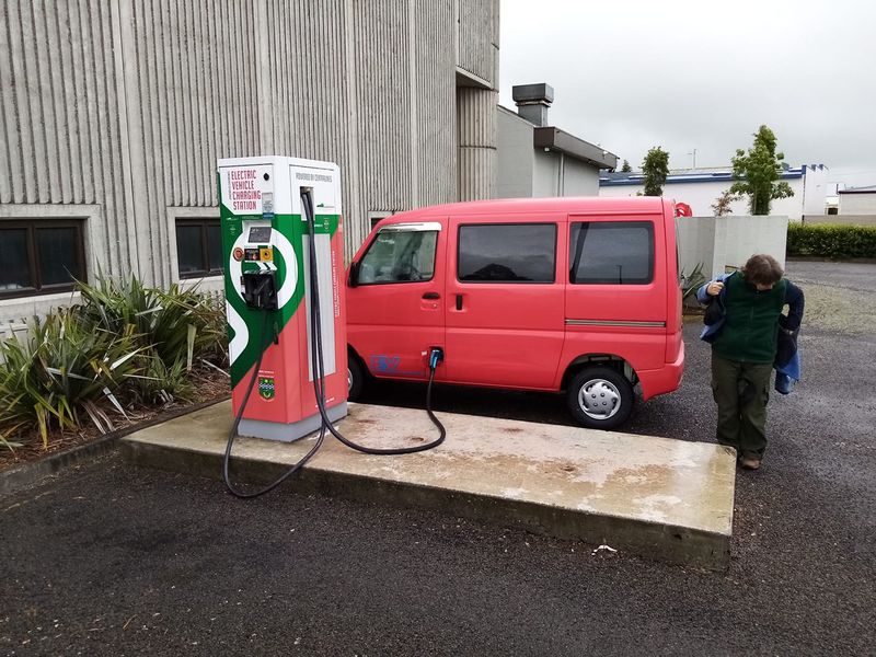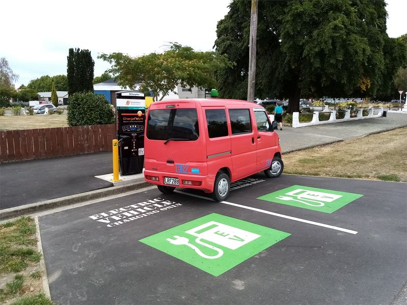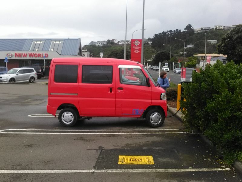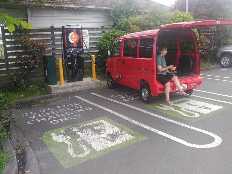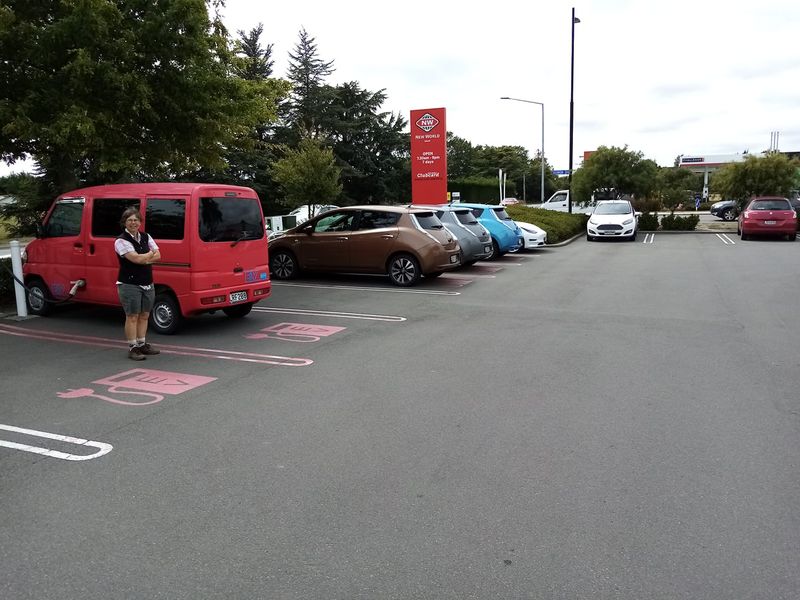 On our big road trip from Porirua to Alexandra in Squirrel our Miev Minicab. Topping up at Lincoln New World, and as well as us fast charging there were 3 Leafs and a Tesla 3 all slow charging. Across the road at some research place, 2 more Leafs parked up. Mainstream or what?