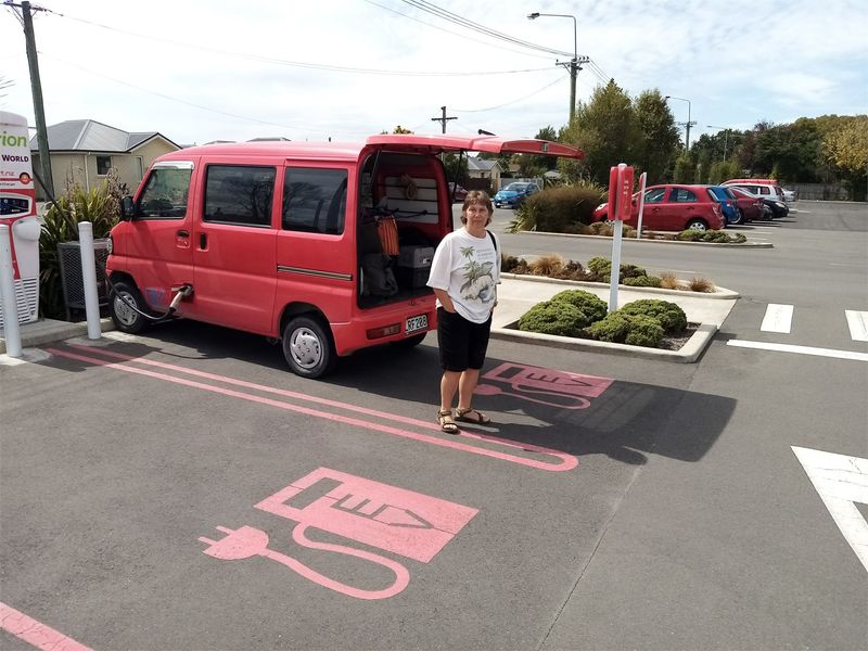 Not sure that i want to admit to this, but we just spent 3 weeks travelling from Porirua to Cromwell and back in our Mitsubishi Miev Minicab Van. We went to cycle 4 trails in Central Otago, so took our bikes and camping gear. We travelled 2185kms in the van, and 382km on the bikes. The amazing part is that we charged our van 51 times over the trip, not counting before and after at home! We also charged our bikes 8 times! Don't think I can claim a record for most charges on a road trip, but I am really proud of the way Squirrel handled the kms and the charging.