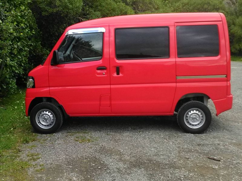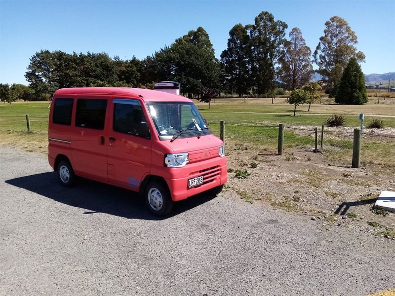 Thanks for letting me join this exclusive little group. We have a Mitsubishi Minicab Miev with a 16kWh battery. We have done 4200 kms since we bought it last October (with just 35kms on it). The red colour is Japan post office red, and we love it. Swapped the nasty monophonic radio for a Sony head unit with 7" screen, and added some wheel trims! Next trip is camping at Otaki Forks in later this month!