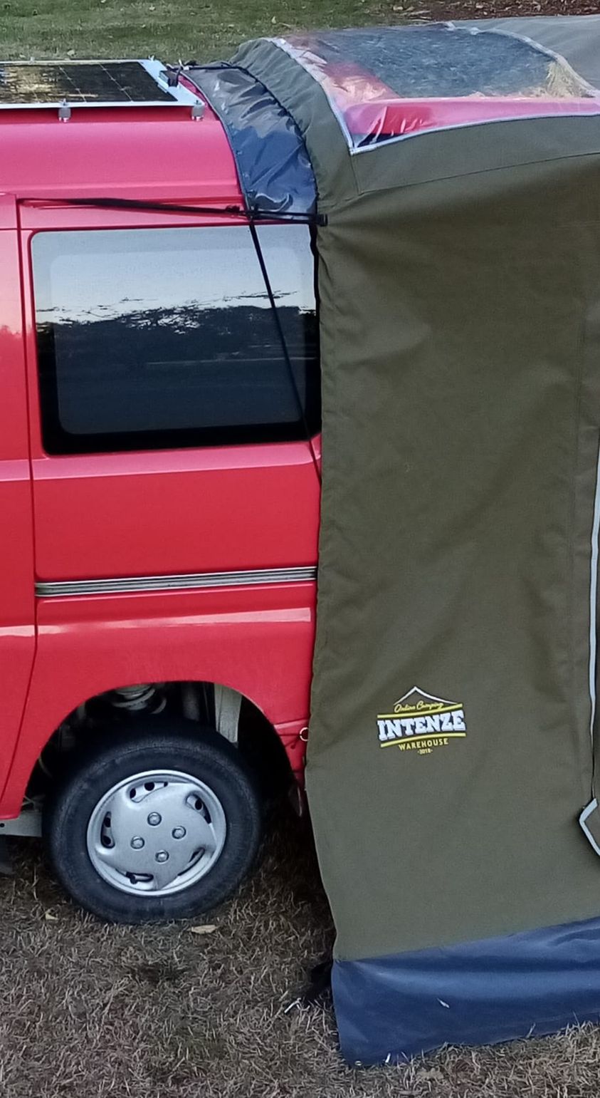 I think I qualify for membership in the small van category. This is Squirrel, our Mitsubishi Miev Minicab van, a whopping 3.4 meters long! On the back we use an awning over the back door from intenze.co.nz, which means the whole of the interior 1.9 x 1.35 metre space is for sleeping. In February we drove from Wellington to Little River on the Banks Peninsula, and only had to recharge 17 times (its electric). Looking forward to sharing ideas for space-saving and packing stuff into small spaces.
