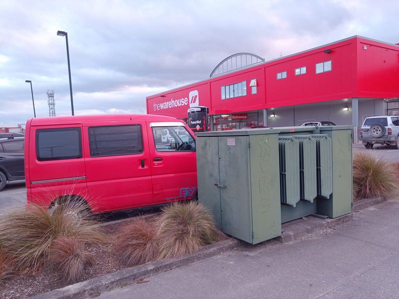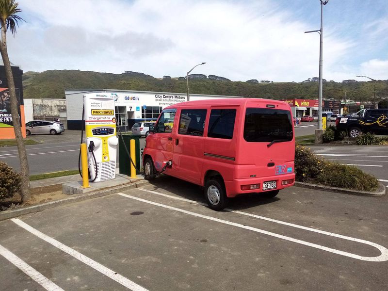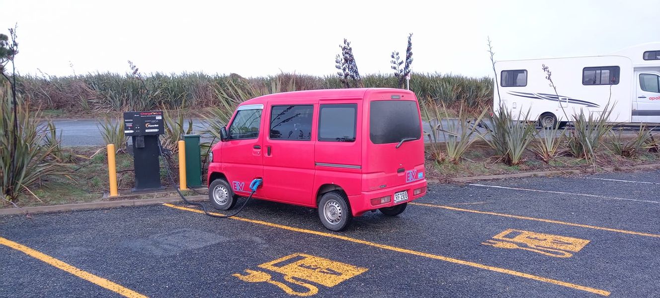 On our big road trip from Porirua to Alexandra in Squirrel our Miev Minicab. Topping up at Lincoln New World, and as well as us fast charging there were 3 Leafs and a Tesla 3 all slow charging. Across the road at some research place, 2 more Leafs parked up. Mainstream or what?