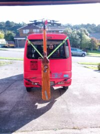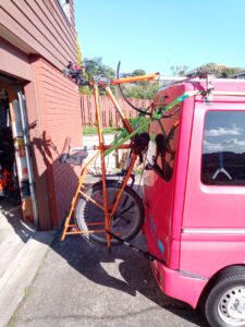 We have considered many ways of carrying a bike or two on the back of the van, but there are issues with most of them. Our bikes are long, over two metres long for the Yuba, so they won’t really fit across the van without overhanging a long way. Racks to carry bikes vertically are expensive and usually designed to carry mountain bikes. We also considered a light weight trailer, but even though the trailer and van together would be shorted than some cars, the ferry companies to cross between the North and South Islands of New Zealand would just about double our fare if we added a trailer.