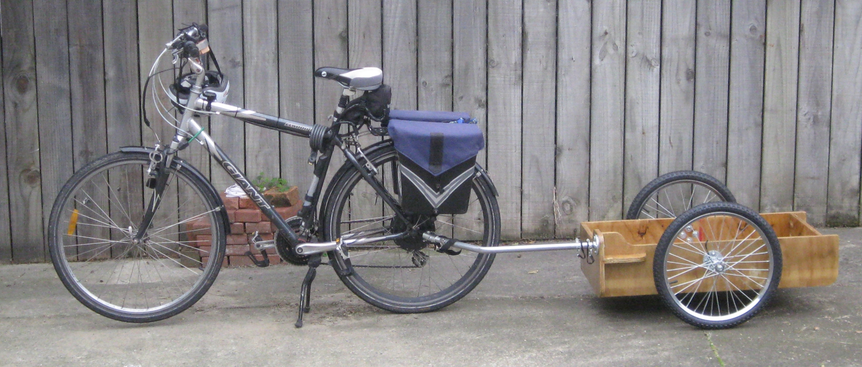 The drawbar attachment is positioned so that the pivot point is close to the centre line of the trailer. The trailer will now runs straight, but is offset towards the left by 140mm behind the bike.