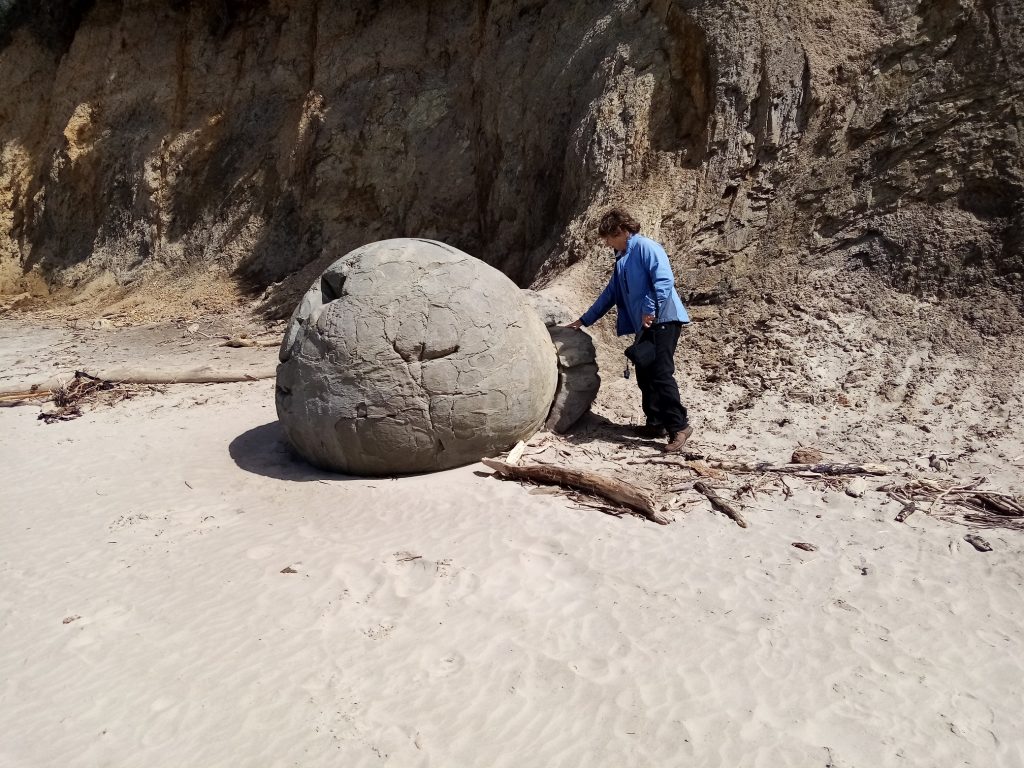 Lynn at Moeraki Boulders