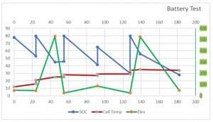 So what does this show? Firstly, temperature did not increase during periods of regeneration braking (the downhill bits!). Not at all, in fact the temperature decreased slightly. Even on the steepest, longest downhill, only 1% of state of charge was recovered, nothing at all really.